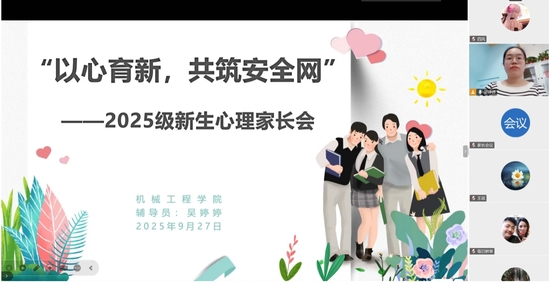 为促进家校联动,凝聚育人合力,共同助力新生成长成才,2025年9月27日上午,机械工程学院通过线上方式成功举办了2025级新生家长会。本次会议以“以心育新,共筑安全网”为主题,学院辅导员围绕大学生心理健康、校规校纪与反诈意识培养等内容与家长们进行了深入细致的交流。