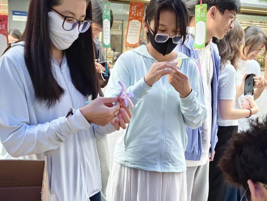 “心灵扭扭棒”区域充满了创意与童趣。五彩斑斓的扭扭棒在同学们手中弯曲、缠绕,被巧妙地塑造成各种形态。来自现场的一名新生分享道:“我用扭扭棒做了一朵花,代表我此刻既平静又充满希望的心情。”这个过程让无形的情绪通过指尖创作变得可视、可触,成为一种独特的情绪表达与释放。
