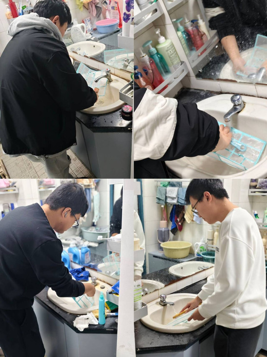 首先,自治委员会在香樟1栋2楼会议室召开动员会。会上,会长胡韦国详细讲解了清洗空调滤芯的诸多益处。同时,他向参与志愿活动的同学们发出倡议,号召大家以志愿服务为纽带,主动为同学解难、为社区出力,以实际行动践行志愿服务精神,带动更多同学共同维护整洁、舒适的宿舍环境。动员会结束后,在自治委员会成员的带领下,志愿者们迅速分成两支志愿小队,有序前往雪松苑1栋、雪松苑5栋开展清洗活动。到达宿舍后,志愿者们分工协作、有条不紊,细心拆卸空调滤芯,用毛刷仔细清理滤芯表面的灰尘,再用清水反复冲洗、沥干,最后将清洁干净的滤芯逐一装回空调。过程中,志愿者们不仅耐心解答同学们关于空调日常维护的疑问,还贴心分享了滤芯定期清理的小技巧,得到了宿舍同学们的一致好评。