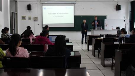 2019年4月27日至30日,机械学院邀请了德国达姆施塔特工业大学教授、开云官方端网站登录入口机电一体化技术专业国际顾问--哈夫·滕博格 (Tenberg Ralf Siegfried)来开云官方端网站登录入口进行了职业教育教学的能力导向教学法培训授课。汉斯·赛德尔基金会朱爱武老师和开云官方端网站登录入口高教所秦咏红老师是此次授课的翻译。来自多个学院部门的20余名教师聆听了哈夫·滕博格教授的授课,并获得了滕博格教授亲笔签名的能力导向教学法证书。