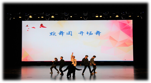 晚会由默舞团的开场舞拉开序幕。他们踏着轻捷的舞步,伴着强劲的节奏,舞起来,他们像是狂舞在人生的舞台上,给观众带来无限的震撼,接下来他们舞转回红裙,婀娜多姿的舞动着着,美的让人陶醉。