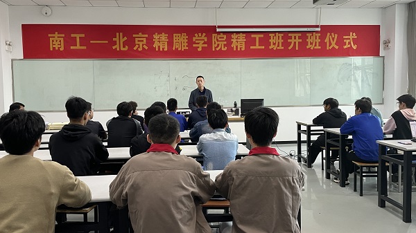 11月9日,南工-北京精雕学院精工班开班仪式在北京精雕学院G2-102教室举行。机械工程学院副院长杨海波,北京精雕科技集团有限公司南京分公司总经理、南工-北京精雕学院院长梁彦松,以及精工班全体指导老师和同学参加了此次开班仪式。