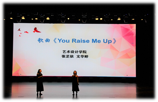 “You raise me up to more than I can be.”两个女孩子的声音温柔却掷地有声,让我们感受到了一种不服输,超越自己的精神。